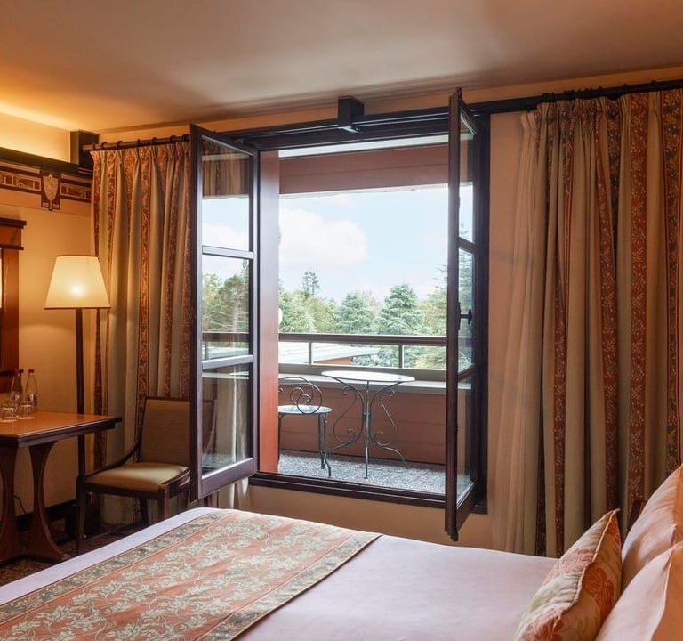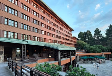 Disney Sequoia Lodge is a 3-star hotel set among pine and sequoia trees on the shores of Lake Disney. Its design is inspired by traditional forest lodges, with wood, stone, and a fireplace-centered ambiance. The Disney Parks are about 10–15 minutes away on foot, or just a few minutes by free shuttle bus.