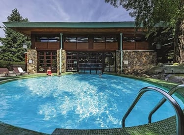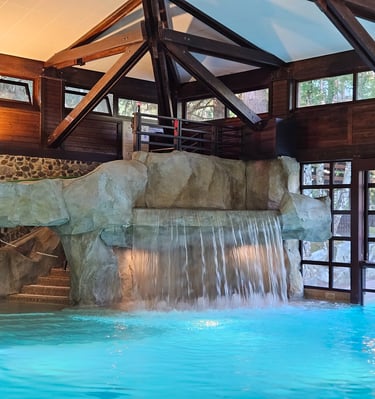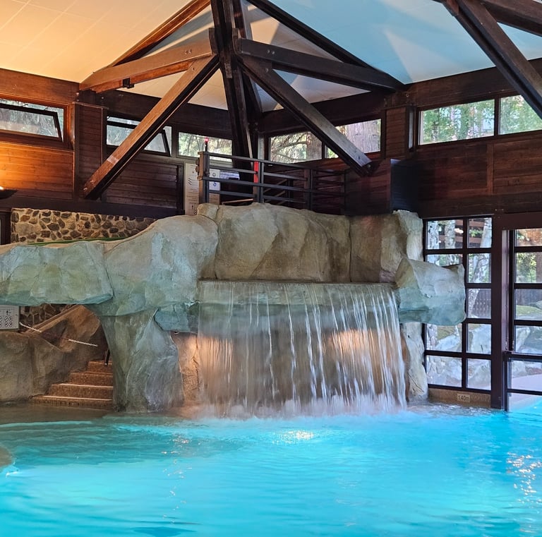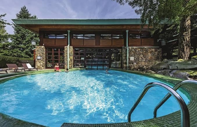 Indoor and outdoor heated swimming pools, including a slide and children’s play areas.